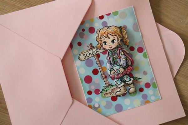 Hoe leuk is het om van opa, oma, oom of tante, buren... dit kaartje te krijgen als je voor het eerst naar school gaat?